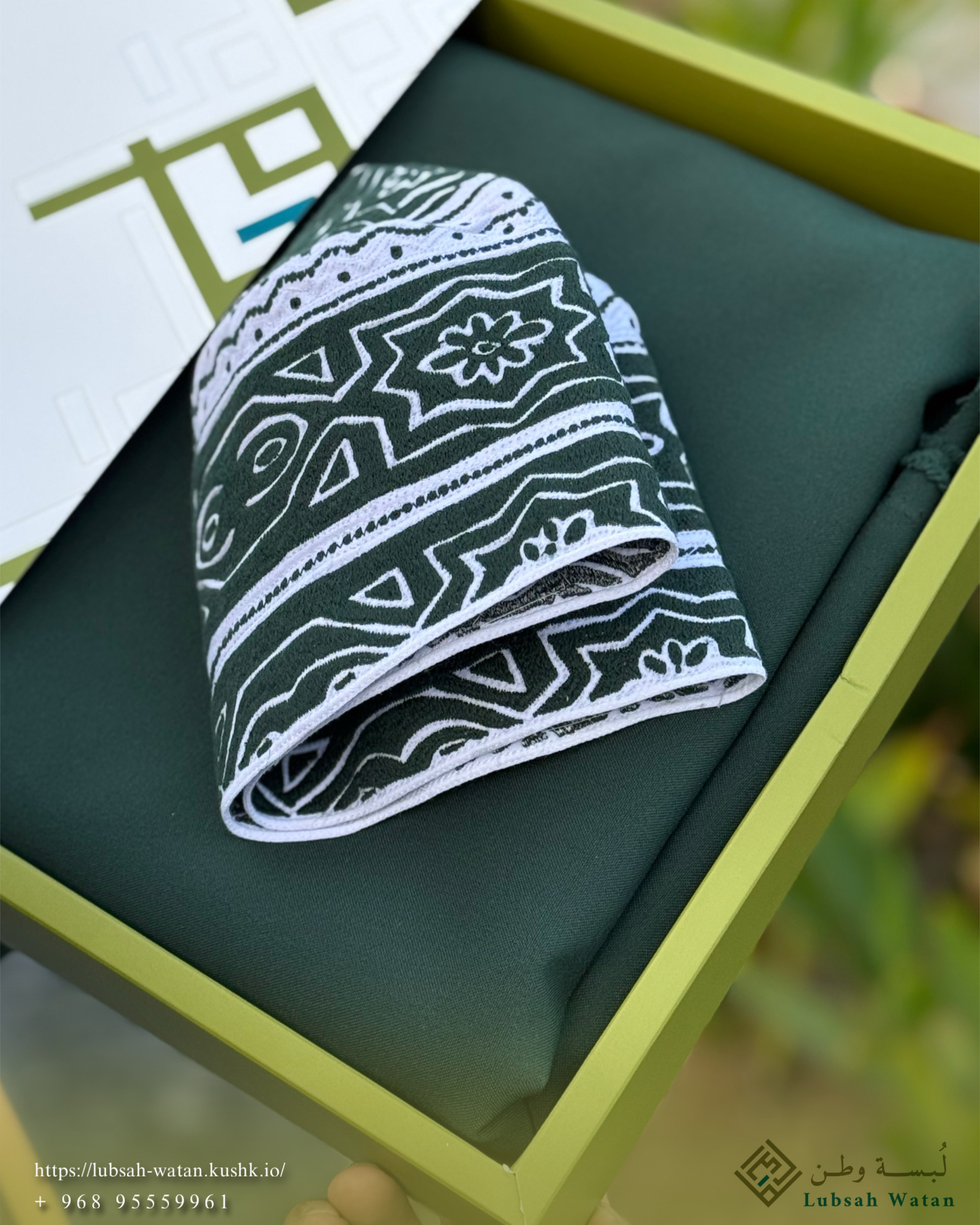 اختر ما يناسبك:كِمَّـةٌ عُمانيّـة، وقُماشٌ يُجَسِّد الأصالة| الكِمَّة: 10 ر.ع| القُماش 3 وآر ونصف : 11 ر.ع| الطقم { طقم الوطن } : 21 ر.ع